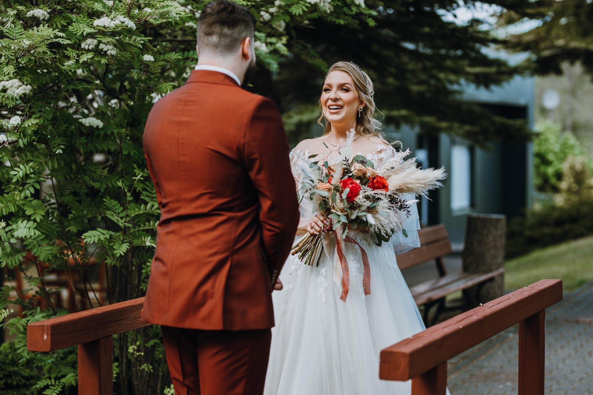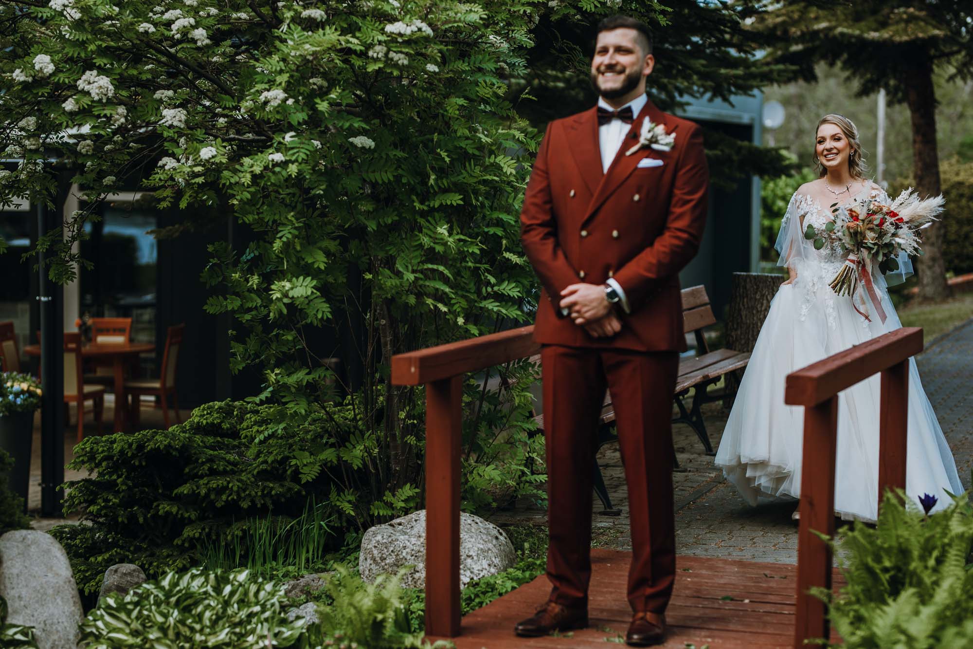 A ogrodowy first look? Magia! Widok Izy, kiedy zobaczyła Pawła po raz pierwszy, był bezcenny. Na prawdę warto poświęcić te 10 minut na uchwycenie Waszej radości, gdy po raz pierwszy zobaczycie się w strojach ślubnych :)