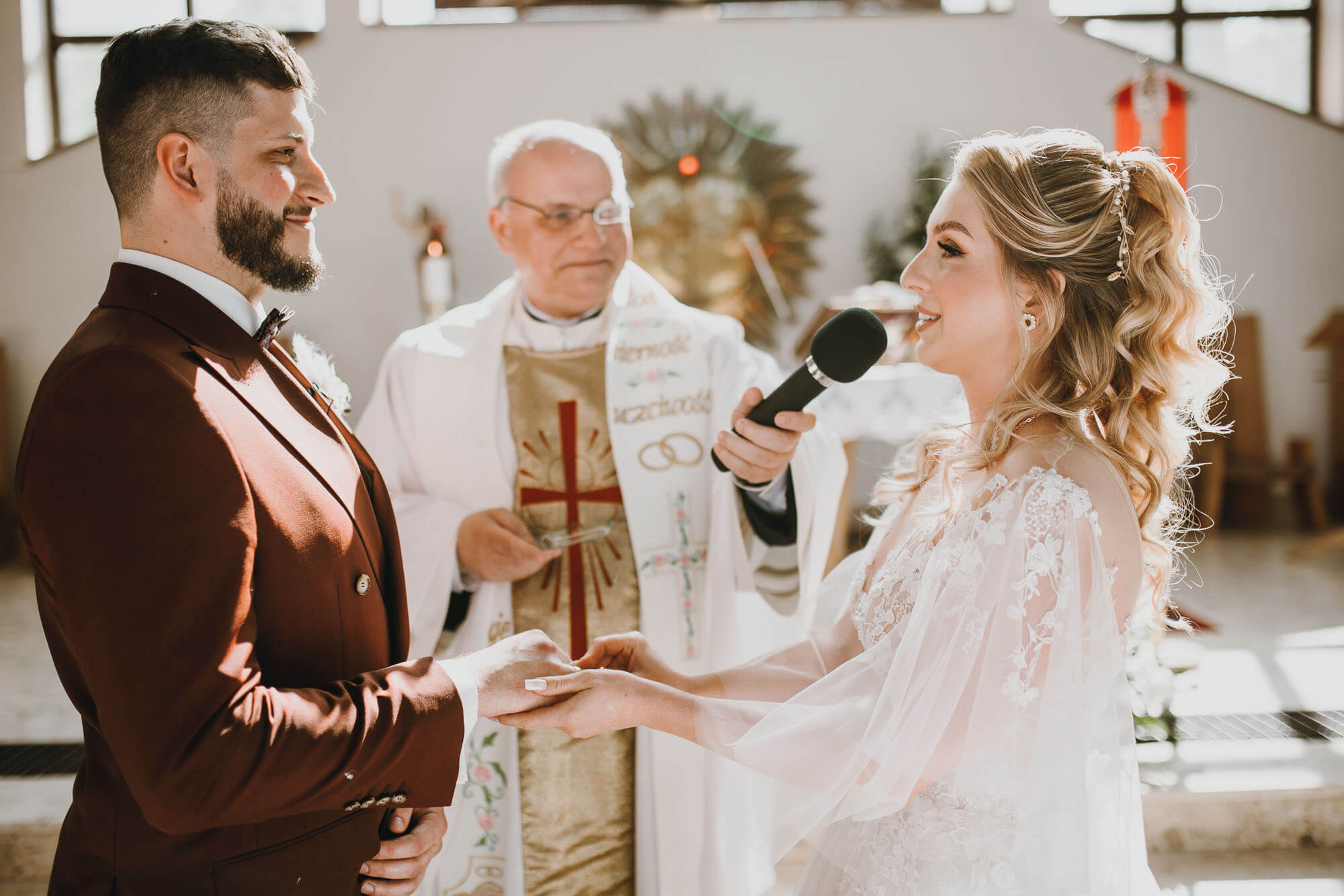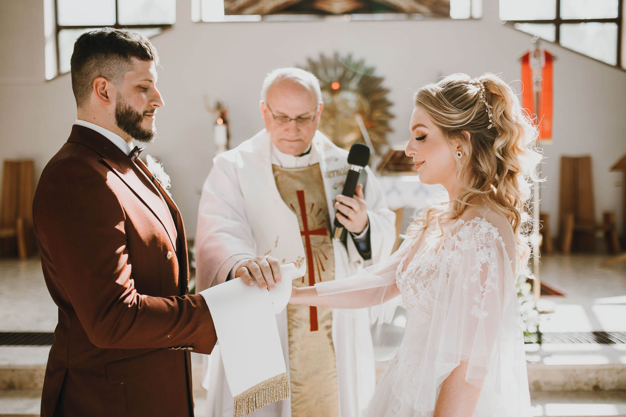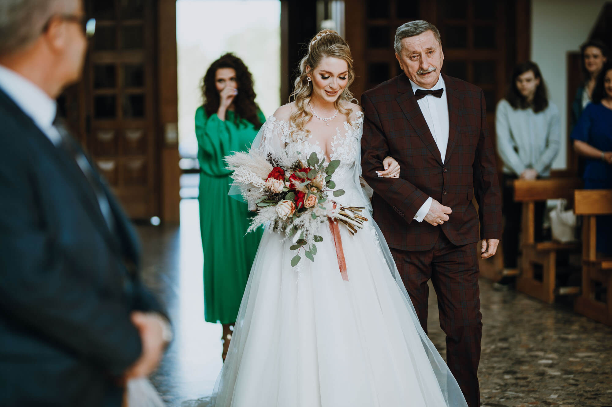 Do kościoła para młoda pojechała zabytkowym autem, co dodatkowo podkreśliło klimat tego wyjątkowego dnia. Do ołtarza Iza była prowadzona przez swojego tatę. To zawsze wzruszający moment, kiedy tata oddaje rękę swojej córki.