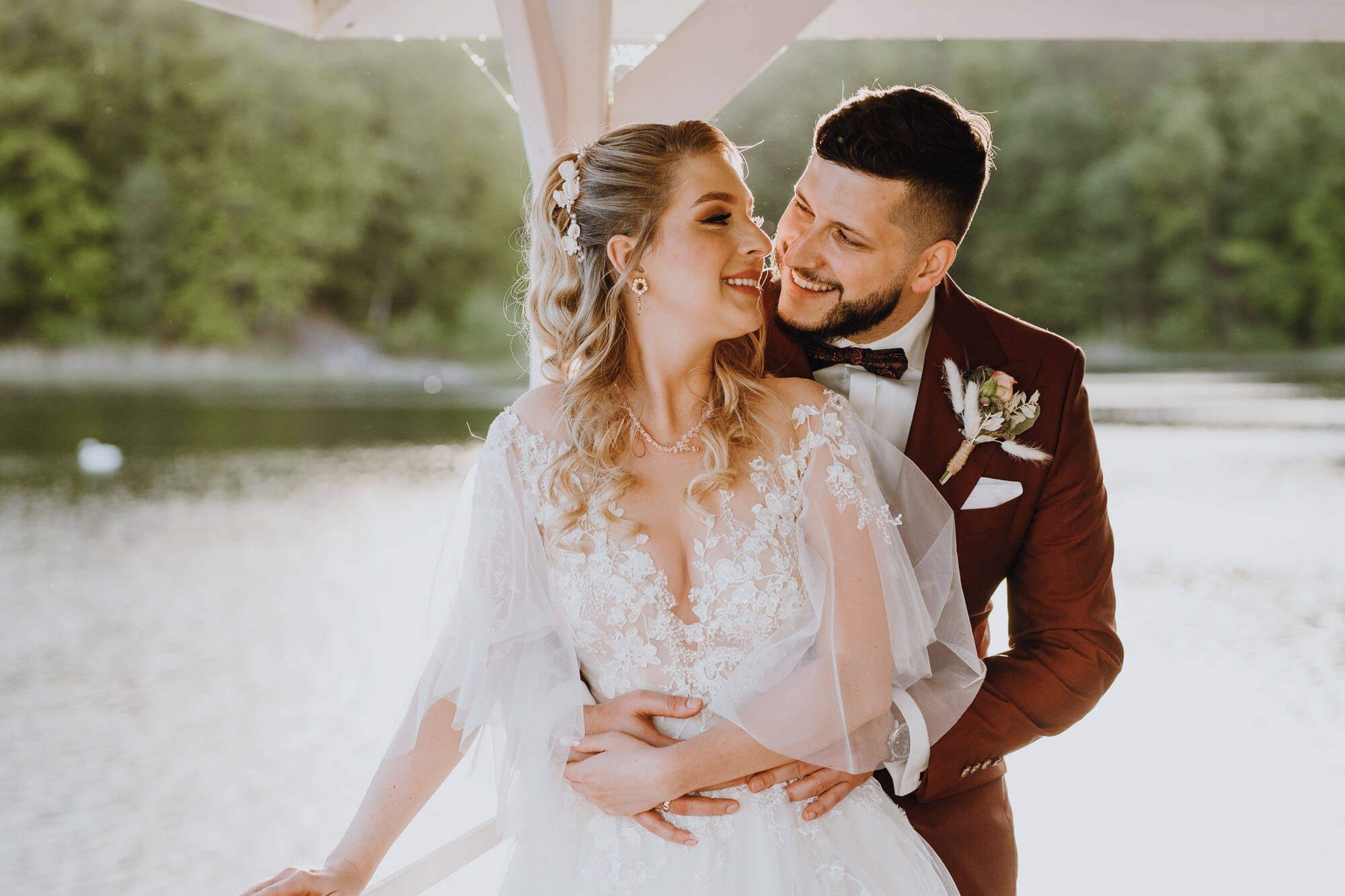 Ale wracając do Hotelu Otomin – co za miejsce! Nad jeziorem, sala weselna tuż przy wodzie, a pomost? Idealne miejsce na mini sesję w dniu ślubu!