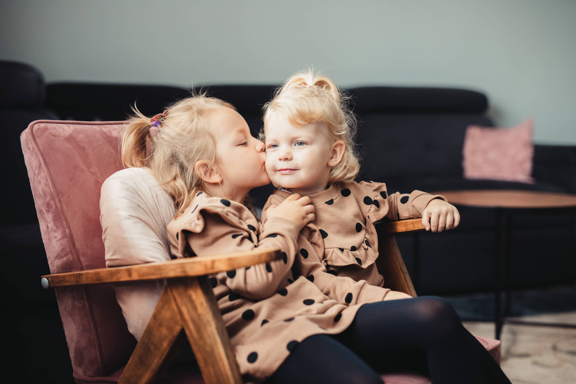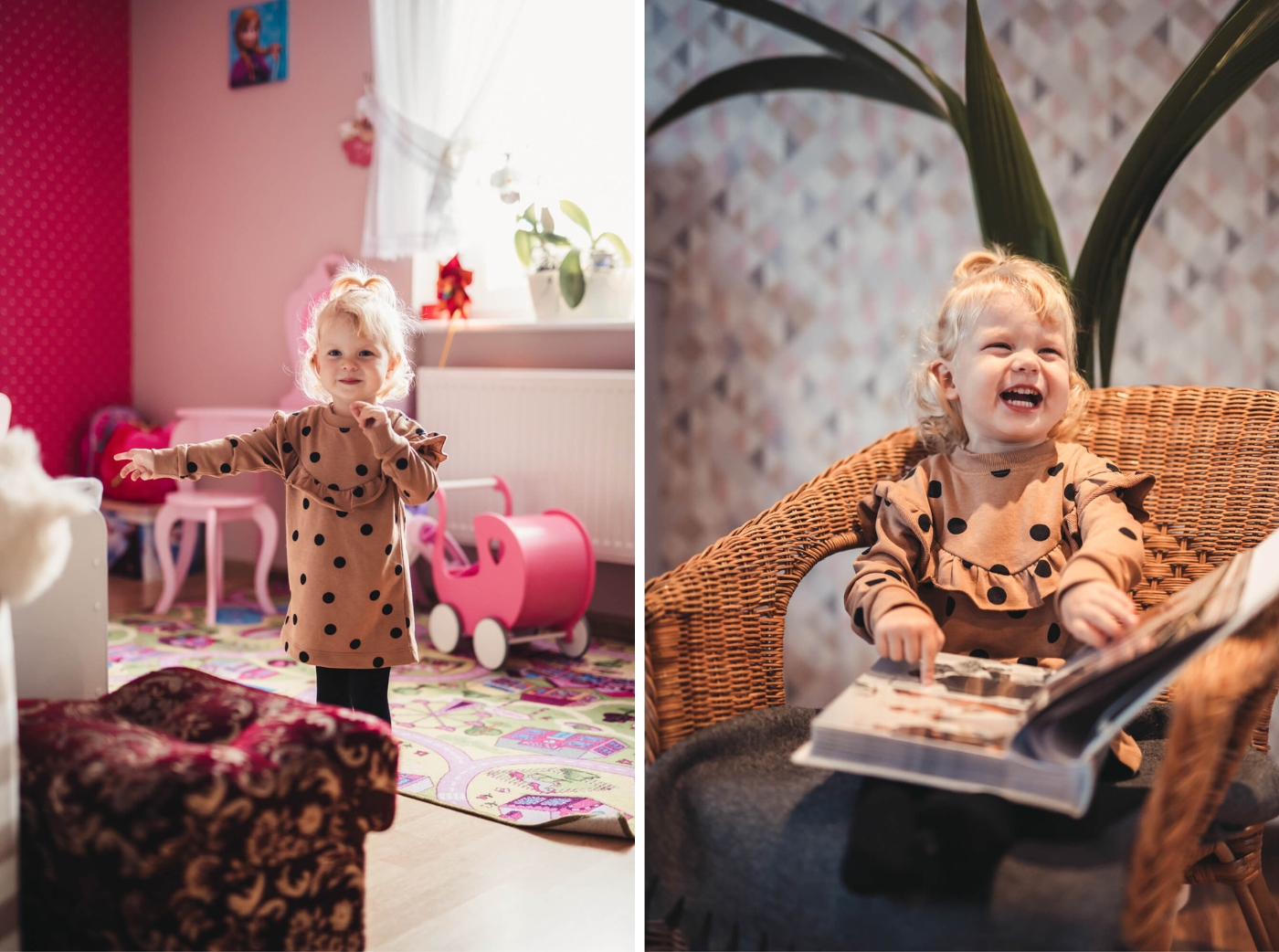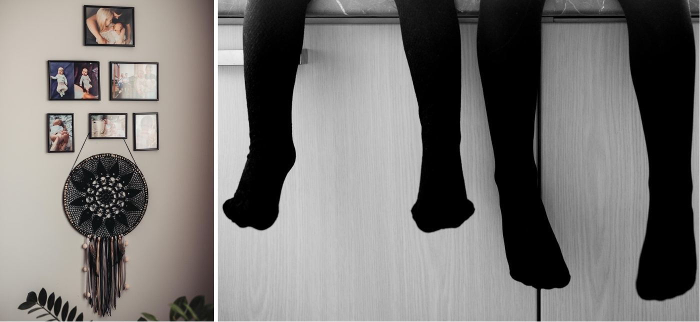Przede wszystkim sesja powinna odbywać się tam, gdzie czujecie się najlepiej. Może to być salon, kuchnia, sypialnia albo pokój dziecka. Ważne jest, aby było tam jasno i przytulnie. Oczywiście, warto zadbać o porządek, ale bez przesady – dom to miejsce pełne życia, a nie katalog wnętrzarski. Dlatego zostawcie na widoku przedmioty, które są dla Was ważne i tworzą rodzinną atmosferę.